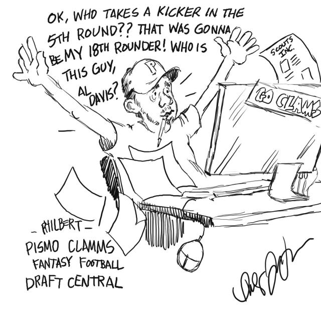 You see, I am the Owner/Coach of the Pismo Clamms, in a free Yahoo Fantasy League with a bunch of Facebook buddies. Pride hangs in the balance, every pick will be viewed with a “Damn! I wanted him!” or a snickering, “What a tool, that guy broke his leg in practice this morning.) Believe me, the last thing you want to be is “a tool” in a fantasy football league. Think about it, where do you go from there?