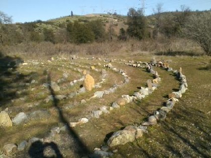 The answer came about a month ago when a friend and I went for a walk on the Sacramento River Trail (the Benton Drive/Court Street side). About 1 mile in – maybe more – we spotted something I’d never noticed: a large labyrinth off the path, down a steep little walkway. This labyrinth was made almost entirely of rocks, most of which were probably taken from the nearby stream bed.