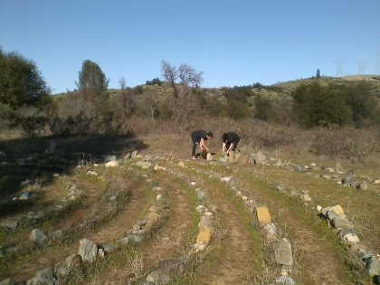 While my friend and I were there we saw two young men who went down to the creek and hauled up some large boulders to include in the labyrinth. One of of the guys mentioned that his dog had died, and this was one way to honor and remember his pet.