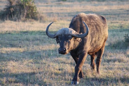 Our lodge was built on stilts, with rooms with balconies overlooking the pond and salt lick, which was floodlit through the night. We saw a group of four elephants, those two splashing Cape buffalo, and dozens of waterbuck and bushbuck. The birds were lovely and strange to us. A large African Hornbill with its wicked beak appeared to watch us closely. Mosque swallows swopped around the pond and Egyptian geese complained noisily and stalked along the shore in the way of Canada geese in our part of the world. In the morning, a little Sykes monkey came to the window of our room, put his paws up on the window and asked if we had any breakfast. And the staff fussed over all these guests. Our nature walk was not just slog through the mud. Staff met us halfway through out 2 hour walk with thermoses of coffee and tea, some brandy, and little cakes. It is hard to imagine that Karen Blixen’s friend Denys Finch Hatton did safari any better.
