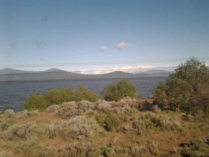 Later in the morning, after sunrise at Klamath Falls, a pair of Trails and Rails docents boarded who acted as train travel guides. They pointed out nesting eagles and red-winged blackbirds and mountains and lakes and Oregon lore. Very interesting.