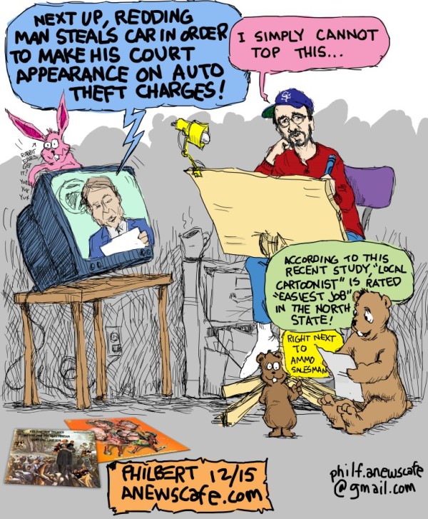 Phil Fountain is a pseudonym for ANC’s prodigal cartoonist, Philbert Phountain, who has recently returned from a working hiatus where he served as the lead fact-checker for George Santos. He lives in Shasta County with his long-suffering wife, Christine, as well as a variety of layabouts and urchins who claim to be his progeny … including three grandchildren. He busies himself with his crayons and obsessing over the fate of his favorite baseball team while a small dog sleeps under his desk. He’s actually not such a bad guy as evidenced by the fact the dog rarely bites him anymore. Look for his crudely rendered drawings in future posts on A News Café.