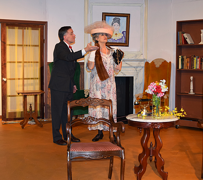 Elsie Ritchie threatens to steal a few scenes in her twin roles as the socialite Mrs.Chauvenet and Mrs. Chumley, the fading flapper who is married to the psychiatrist, Dr. Chumley. Ritchie, a retired dance and drama instructor, was last seen at Riverfront as a pregnant nun in “The Dixie Swim Club.”