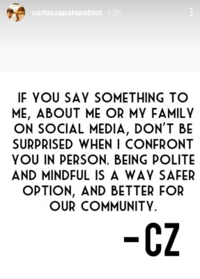 Judging by Zapata’s death threat, he didn’t learn a thing.
