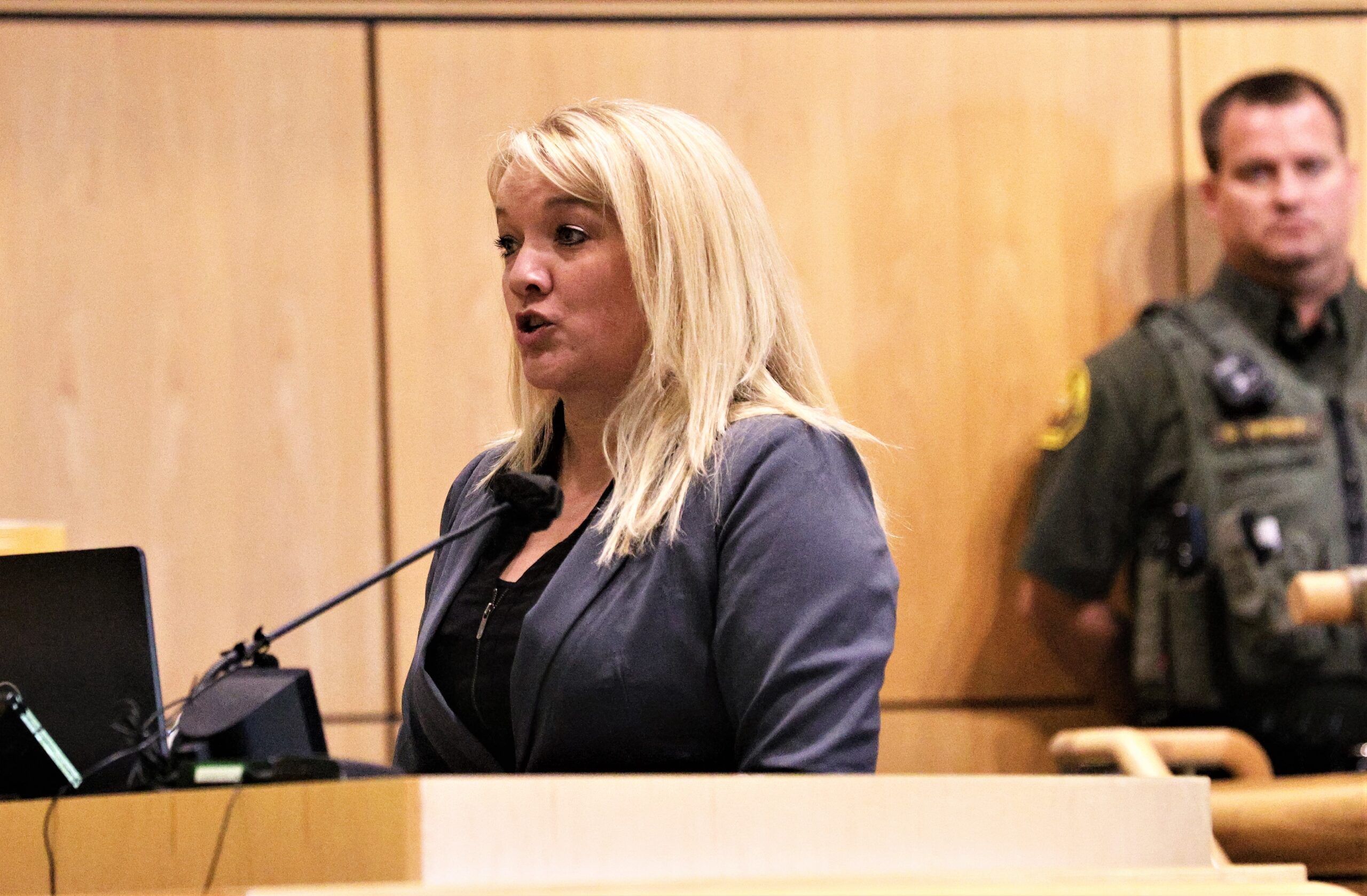 Erin Bertain, Shasta County’s deputy county executive officer, gives a presentation before the Board of Supervisors on Tuesday, April 25, 2023, on needs and costs for a full hand-tally process for local elections. (Photo by Michael Chapman/A News Cafe.)