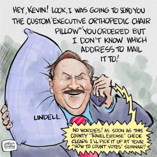 – He never told us who he met with during his audience with the Pillow Guy, despite being asked on numerous occasions. He said he’d given everything he was required to which was a three-sentence email which he wrote before flying out, saying he’d be discussing “legislative practices, various state policy and law, and hand-counting and mechanical voting systems.”