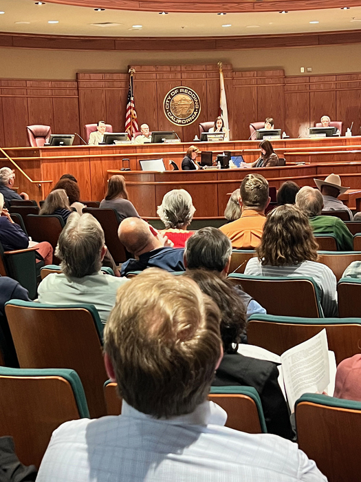 Aaron Hatch, foreground, awaits his fate during Tuesday’s Redding City Council meeting. Photo by Aaron Dobson