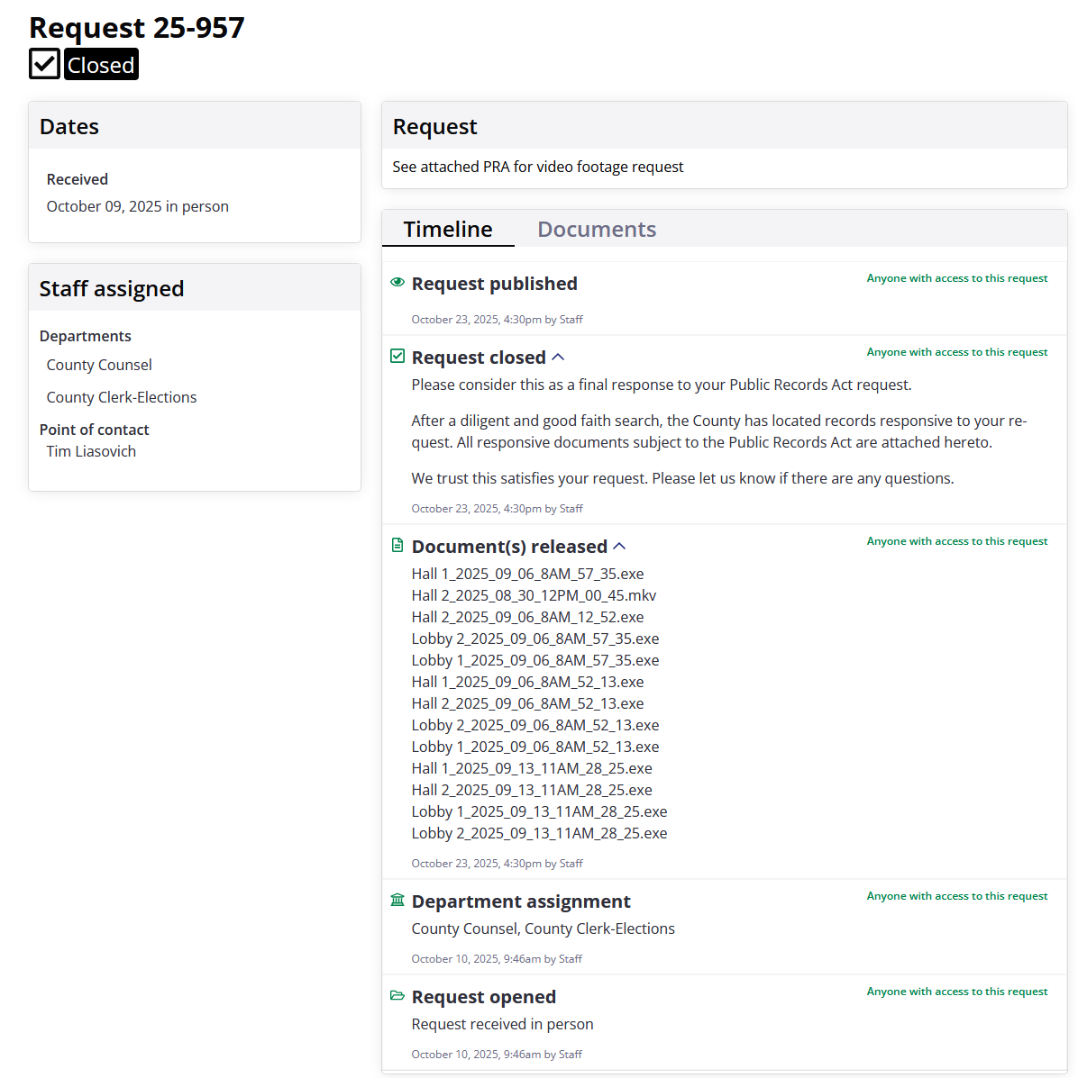 The records were provided through the county’s NextRequest portal. Viewable here.