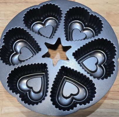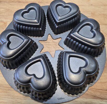 So decided to make Maddalena’s Flourless Chocolate Cake for the Galentine’s Day event. Naturally, I could have made the cake simple, like Maddalena’s, baked in a round cake pan. But I have this six-section heart-shaped pan, and it’s pretty much a once-a-year deal, so I decided to use it.
