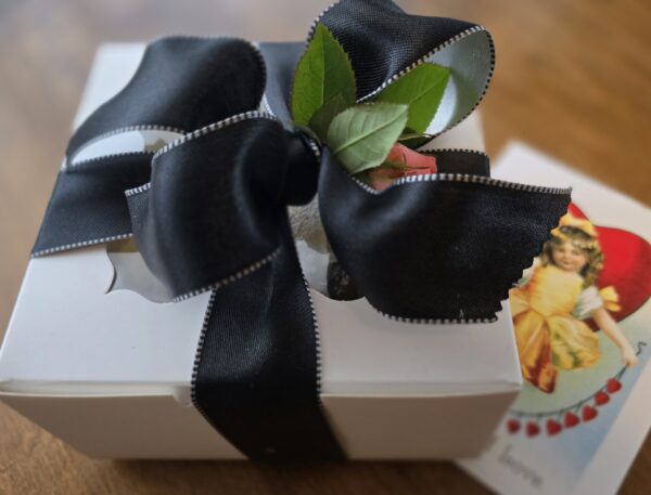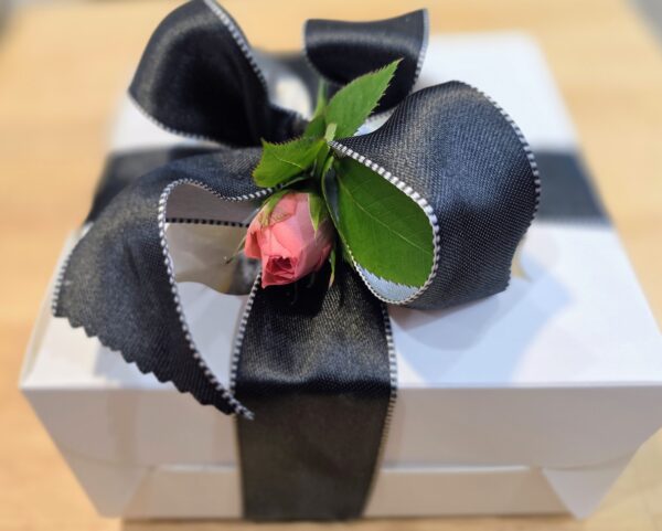 Oh, in case you’re wondering how my heart-shaped Flourless Chocolate Cakes turned out in the end, I have to say that they turned out beautifully (hidden), tucked inside white bakery boxes, a pretty bow, adorned with a small pink rose.