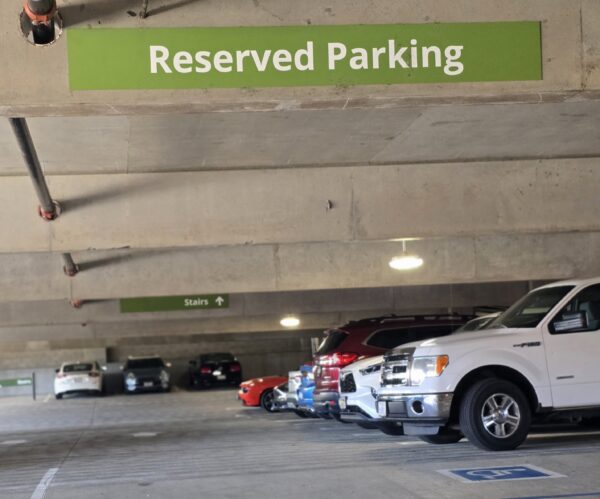 An elevator is available on each parking garage level. However, yesterday the first-level elevator was out of commission for a while, which meant walking up to the 2nd level to catch a ride to my 6th level. No big deal.