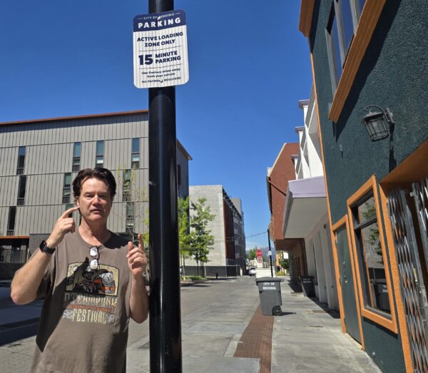 Professional DJ and special event emcee Mike Flanagan’s downtown office gives him a front row seat to Redding’s downtown parking issues, and Tuesday he quickly recited some of his top parking pet peeves. At the top of his list is the issue that although the alleyway behind his office is designated as a loading zone, vehicles frequently park there.