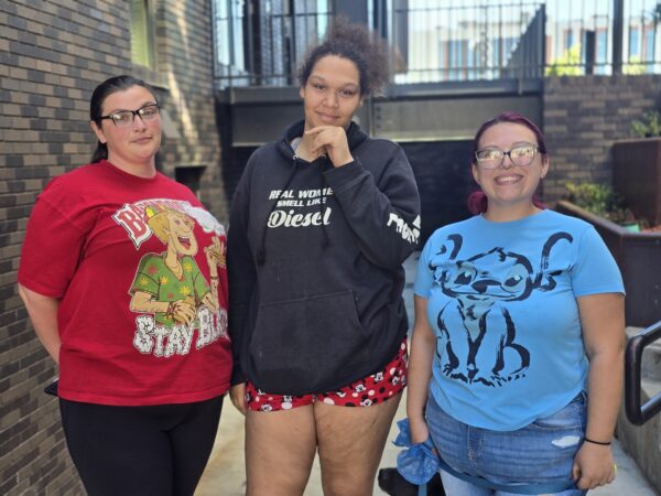 From left, Ashlee Friedman, Calli Miller, and Charllotte Cory are all residents of the downtown apartment complex.