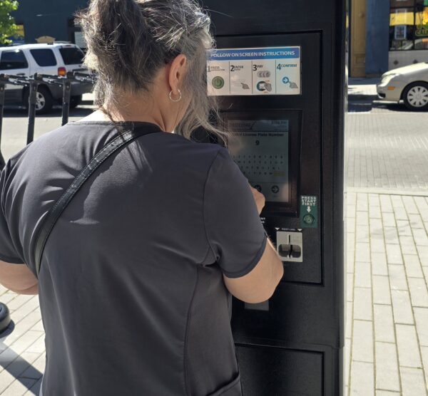 While Feusi typed her vehicle information into the kiosk on an unseasonably warm March day, it wasn’t that many weeks ago when it was pouring rain, which left people to stand in miserable, inclement weather as they used one hand to hold an umbrella, and the other to fish out their credit card and pray they they remembered their car’s license plate number.