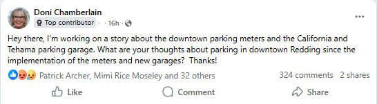 At last count there were 324 comments, most of which criticized Redding’s downtown parking system, complete with detailed explanations.