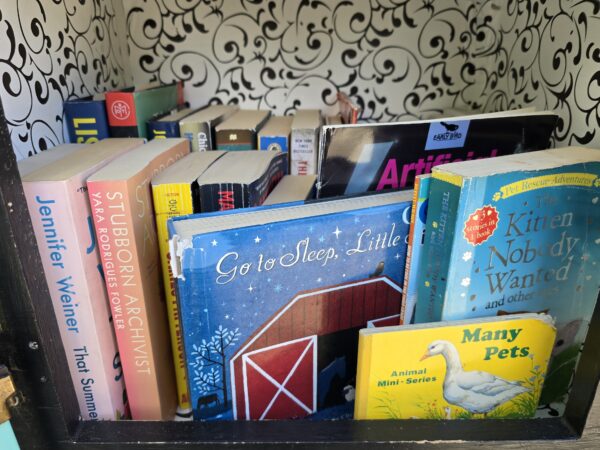 I later told my friend about it, and he guessed they were stealing, then re-selling the books. So I ordered custom stickers, which I place over all the books’ USB codes, with the words, “Noni’s Little Free Library. Take a book, leave a book. NOT FOR RESALE.”