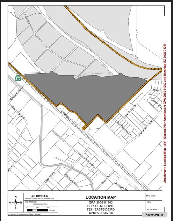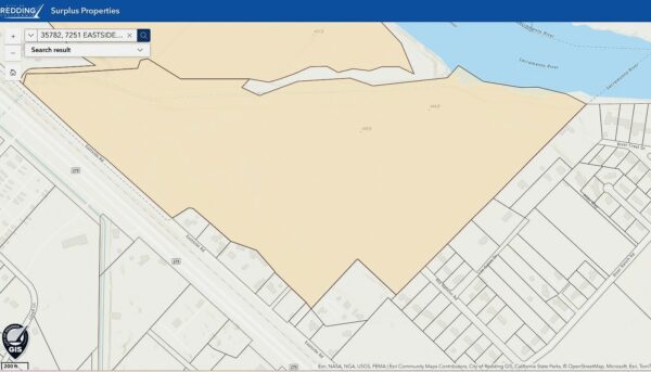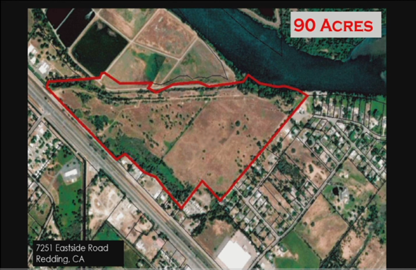 The property, consisting of two adjacent parcels in south Redding, sits at 7251 Eastside Road between Highway 273 to the west and the Sacramento River to the east. The city’s wastewater treatment plant sits to the northwest and nearby is the Haven Humane Society.